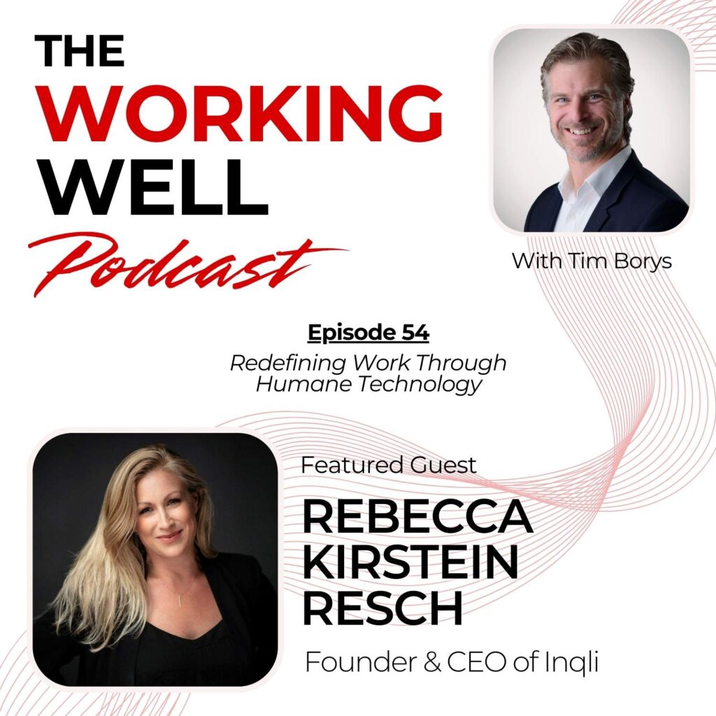 In this episode of the Working Well Podcast, Tim Borys dives into the world of technology’s double-edged sword with Rebecca Kirstein Resch. As technology becomes increasingly essential, we find ourselves overwhelmed, battling “techno stress” and trying to stay productive. Rebecca Kirstein Resch discusses the “technology paradox” along with the secrets to digital wellness, combating the dark side of social media, and leveraging technology to create thriving human-centered workplaces.